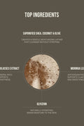 Sodium Shea Butterate, Sodium Cocoate, Sodium Olivate, Aqua, Glycerin, Molasses Extract, Cymbopogon martini Oil, Citrus aurantium bergamia Fruit Oil, Styrax benzoin, Moringa Oleifera Leaf Benzyl Alcohol, Benzyl Benzoate, Geraniol, Limonelle, Linalool.